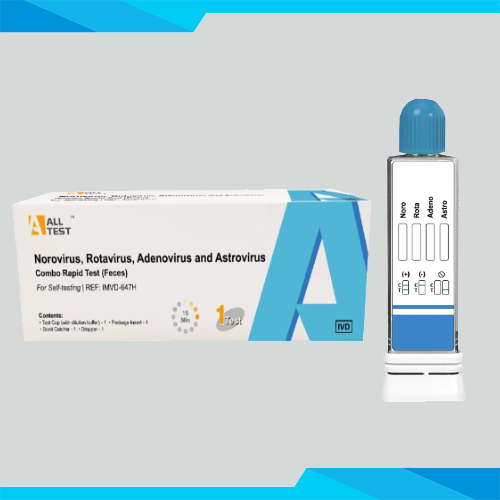 The Norovirus, Rotavirus, Adenovirus and Astrovirus Combo Rapid Test (Feces) is a rapid chromatographic immunoassay for the qualitative detection of norovirus, rotavirus, adenovirus and astrovirus in human fecal specimens to aid in the diagnosis of norovirus, rotavirus, adenovirus or astrovirus infection.