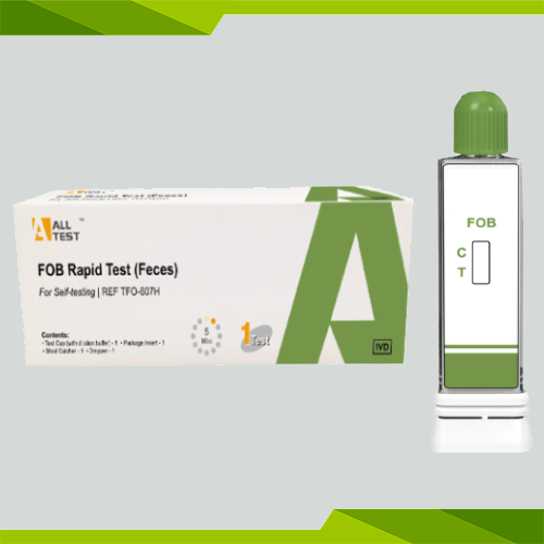 The FOB Rapid Test is a rapid chromatographic immunoassay for the qualitative detection of Human Occult Blood in feces. For self-testing in vitro diagnostic use only.
