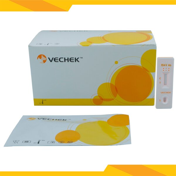 The Equine Infectious Anemia Virus (EIAV) Antibody Rapid Test Cassette (Whole Blood/Serum/Plasma) is a lateral flow immunochromatographic assay for the qualitative detection of equine infectious anemia Virus antibody (EIAV Ab) in equine’s whole blood, serum or plasma. For veterinary use only