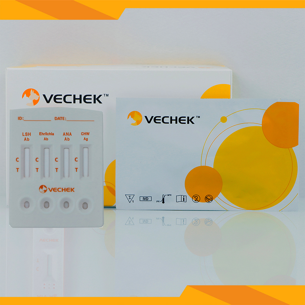 The Canine LSH Ab+EHR Ab+ANA Ab+CHW Ag Combo Rapid Test Cassette (Whole Blood/Serum/Plasma) is a combined cassette to differentially diagnose the presence of Canine LSH antibody, Canine Ehrlichia antibody, Canine Anaplasma phogocytophilum and Anaplasma platys antibodies,CHW Ag in canine’s whole blood, serum or plasma.