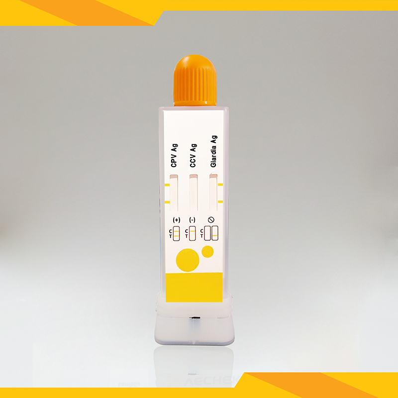 The CPV+CCV+Giardia Lamblia Antigen Combo Rapid Test (Feces) is a sandwich lateral flow immunochromatographic assay for the qualitative detection of Canine Parvovirus antigen and Canine Coronavirus antigen and Giardia lamblia antigen in dog’s feces.