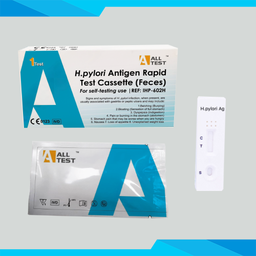 The H. pylori Antigen Rapid Test Cassette (Feces) is a rapid chromatographic immunoassay for the qualitative detection of H. pylori antigens in human feces specimens, providing results in 10 minutes. The test utilizes antibodies specific for H. pylori antigens to selectively detect H. pylori antigens in human feces specimens