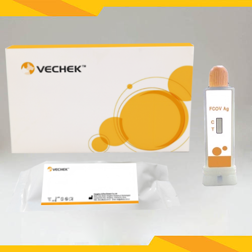 The FCoV Antigen Rapid Test (Feces) is a sandwich lateral flow immunochromatographic assay for the qualitative detection of feline coronavirus antigen (FCoV Ag) in feline feces.